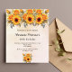Um fundo rústico de gradiente de ouro, decorado com girassóis e rosas amarelos e laranja. Personalize e adicione um nome e detalhes da parte. 1 folha = 1 convite impresso de borda a borda.