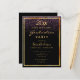 Um cartão de convite feminino e chic para uma festa de formatura 20xx. Glamorosa com elegante e moderno fundo negro e chuva roxa e cor-de-rosa confetti. Modelo para detalhes de nome e festa. O texto Graduação e o nome são escritos com um script de estilo manuscrito moderno. Ouros. Traseiro: cor preta do fundo. Este cartão também está disponível em nossa loja sem cor de fundo no verso.