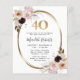 Convite de festas Metálico Dourado Rosa aniversário de 40 anos de orçamento... Nosso convite de festas barato floral aniversário de 40 anos apresenta buquês de lindas rosas rosa-pinceladas, curvas ao redor de uma falsa estrutura oval metálica de ouro, criando uma elegante borda para o texto do convite dentro. Acima do texto do convite está um gráfico de número 40 dourado que adiciona ao toque luxuoso deste convite de festa de aniversário exclusivo. A parte traseira da carta é um delicado rosa-pincelado encontrado dentro dos próprios rosas. Todo texto pode ser facilmente revisado com seus próprios detalhes no modelo de personalização.