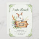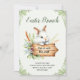 Convite de festas de Páscoa de coelhinho de madeira bonitinho em aquarela.