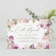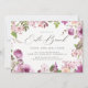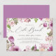 Formas roxas de flores botânicas de cor d'água e moldura de jardim verde, convite para Páscoa Brunch. A parte traseira das placas coordena a cor roxa sólida.