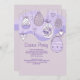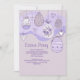 Um convite elegante de Páscoa com bordas e corações decorados em branco e lilás. É perfeito para janto de Páscoas ou caça de ovos.