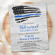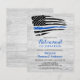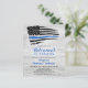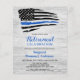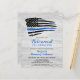 Convites de aposentadoria da polícia de linha azul fina. Celebre anos de serviço dedicado e convide amigos e familiares para a sua festa de aposentadoria na polícia com este Convite para aposentadoria da Polícia de Sinalizador Azul Thin. DESIGN da bandeira americana em cores da Polícia, cor branca e design azul-preto modernos, na madeira de cinza rústica. Este convite para aposentadoria de policial também é perfeito para convites para formatura na academia de polícia, mudança de local na personalização. Estes cartões de convite à reforma da polícia orçamental são um alternativo de convites à reforma gratuitos da polícia. Veja nossa coleção para combinar presentes de aposentadoria da polícia, favoritos para festas de aposentadoria da polícia e suprimentos. COPYRIGHT © 2021 Judy Burrows, Black Dog Art - Todos Os Direitos Reservados. Convite para Polícia de Reforma da Polícia de Orçamento