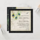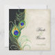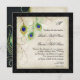 "Convite para Casamento tema damasco Preto de Pancas de Aquarela". A trabalho de arte de uma pena de pavão pintada à mão elegante foi criada por uma artista e designer internacionalmente licenciada, Audrey Jeanne Roberts. Fundo preto com cor pergaminho molho de damasco e traço sutil de rendas. Direitos autorais.