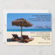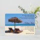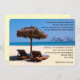 Este cartão mostra uma foto de duas cadeiras de praia e um guarda-chuva de palha. As areias brancas cercam-no e belas sombras do oceano azul e do céu estão à distância. Este paraíso tropical o torna ideal para um casamento de destino romântico. Personalizou este convite com as suas informações de casamento. As costas têm bastante espaço se você precisar fornecer mais detalhes.