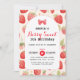 Uma forma doce e sentimental de convidar pessoas amadas para o primeiro aniversário do seu bebê - apresentando morangos charmosos e tons de aquarela moles. (Trabalho de arte Gerado por AI)