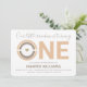 Boho arco-íris primeiro convite de aniversário para bebês. Este convite a cores mudo em castanho, cinza, tom de ouro (não laminado) e branco tem a palavra "Um" em letras grandes com dois arco-íris e um coração como primeira letra da palavra. Simplesmente personalize este convite, adicione-o ao seu carrinho e feliz aniversário ao seu bebê maravilhoso! Boho Rainbow Baby primeiro aniversario Convite Design de Natal | ©Melissa Patton — Artista/Designer