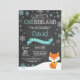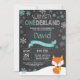 Inverno de Onederland Fox primeiro aniversario. Raposa. Aqua Teal Turquoise e Floco de Neve Branco. Primeiro Aniversário. Menino ou Garota 1rua Convidam. Fundo Chalkboard. Preto e Branco. Para mais personalização, clique no botão "Personalizar" e use nossa ferramenta de design para modificar este modelo.