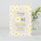 O convite para primeiro aniversario desta menina bonita apresenta um fundo claro, esticado/bege/bege, com margaridas brancas. O verso apresenta um fundo esticado com padrões brancos de bolinhas. Personalize para suas necessidades. Você pode encontrar mais produtos correspondentes na minha loja.