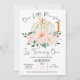 Primeiro aniversario de Abóbora Floral Dourada rosa Convite para Primeiro aniversário da abóbora doce ou convite para o outono com uma abóbora branca e dourada, disposição floral rosa e número falso de abóbora dourada. Esta é uma maneira doce de convidar convidados para um próximo outono ou para uma primeira festa de aniversário do outono para uma garotinha.