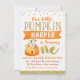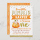 O primeiro convite de aniversário desta rapariga, a abóbora adormecida, apresenta uma faixa, abraça algumas flores e algum texto aquoso, bem como algumas palavras falsas de ouro e haste. O plano de fundo é uma imagem de fundo de papel d'água branco. Este design é ideal para uma festa de primeiro aniversario de outono.