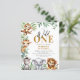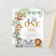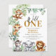 Um cofari selvagem de orçamento, um convite para primeiros aniversarios de animais da selva.
