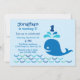 Este lindo e colorido convite de aniversário é perfeito para celebrar o primeiro aniversário do bebê. Ele apresenta um personagem de baleia giro com o número um pulando do spray de água. Essa design é perfeita para uma festa com tema do mar ou sob o tema do mar.