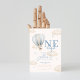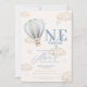 Convide amigos e família para o primeiro aniversário do seu filho com este charmoso convite de balão de ar quente. Apresentando um balão azul macio flutuando entre as nuvens beges com um bege quente e uma paleta azul, esta design traz uma sensação suave e sonhadora para a sua celebração. Perfeito para uma festa de primeiro aniversario doce e na moda. Totalmente personalizável com seus detalhes de evento!