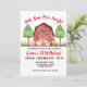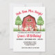 Fazenda/ Barnyard primeiro convite de aniversário com Red Gingham Back apresentando Porco, Ovelha, Vaca e Cavalo com chapéus de festa.