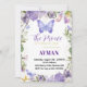 Celebre o primeiro aniversário do seu pequeno príncipe com este encantador convite à borboleta roxa! Com sotaques florais elegantes e borboletas de aquarela macia, este convite é perfeito para uma festa de primeiro aniversario mágica e memorável. Personalize facilmente o nome, a data, o endereço e o RSVP para torná-lo realmente pessoal. Ideal para bebês que fazem um!