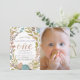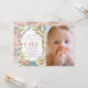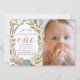 Este belo convite para fotos de primeiro aniversario "nossa pequena flor selvagem é uma" apresenta um fundo branco com flores em rosa, azul e branco. O verso apresenta um fundo cor-de-rosa pincelado com padrões florais. Altere a cor de fundo e personalize para suas necessidades. Você pode encontrar mais produtos correspondentes na minha loja.