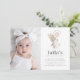 Um coelho doce com uma coroa floral, segurando um balão rosa. Você pode alterar o número 1 no balão para qualquer número e editar todo o outro texto ou remover o número, se preferir. Você também pode mudar a cor do balão nesta design.