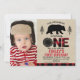 Lumberjack pequeno primeiro aniversario de Foto do Urso Convide um bonitinho de ursos, Lumberjack, o primeiro convite de aniversário com uma pequena silhueta de ursos num fundo de imagem Kraft e xadrez. Excelente para uma primeira festa de aniversário de inverno para um bebê e vai ajudá-lo a preparar a cena para a sua próxima festa de aniversário do pequeno urso de lenhador.