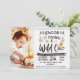 Procurando um belo convite de um primeiro aniversario selvagem para o seu filho? Este design apresenta algumas fontes estilo aquarela, uma coroa dourada falsa e um banner. A design também incorpora vários elementos decorativos como borda de flecha e pinheiros desenhados à mão. A foto do seu menino aparece no lado esquerdo da design. O fundo é um papel de aquarela digitalizado. Esse convite tribal de um primeiro aniversario está pronto para ser personalizado e o mesmo design também está disponível sem foto. Para mais modelos neste tema, visite a loja.