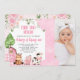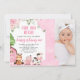 Fazenda cor-de-rosa primeiro aniversario Fotográfico Convite fazenda floral cor-de-rosa doce Primeiro convite de aniversário com um grande número, alguns arranjos florais cor-de-rosa, celeiro cor-de-rosa e três animais quentes. Este primeiro convite de aniversário da fazenda é uma maneira adorável de convidar convidados para uma primeira festa de aniversário temática.