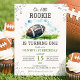 Nosso novato está virando um! Celebre o grande dia do seu filho com este inevitável convite de primeiro aniversário de futebol. Apresentando uma frase brincalhona de futebol e brincalhona "Nosso Pequeno Rookie está virando Um", este convite temático esportivo é perfeito para um novato do ano, aniversário de futebol ou celebração de primeiro aniversario de menino.