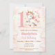 Convite ao primeiro aniversario com um unicórnio feliz, balões, estrelas ouros e nuvens em tons suaves de rosa e bege. Design bonito para o primeiro ou qualquer aniversário de uma menina. Personalizar facilmente todo o texto, incluindo o número do Aniversário. Visite a loja para ver a linha de cheio dos produtos disponíveis :) - Kate Eden Art