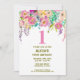 Linda mão pintada de flores, galhos e folhas aquáticas fazem uma bela borda de cima. Trendy, moderno e único convite para o primeiro aniversario de meninas. Perfeito para primavera, ao ar livre, chá de fraldas ou festa de aniversário.