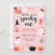 Convite para primeiro aniversario de Halloween cor-de-rosa e laranja