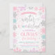 Celebre o seu primeiro aniversario com estes convites para os temas da Terra da Onederland de inverno, sempre fofos! Esse design colorido apresenta flocos de neve pastel e texto com um pouco de prata brilhante.