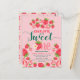 Cartão-postal de convite a um primeiro aniversario de morango rosa doce.