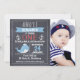 O convite de festas náutico de primeiro aniversario do quadro-negro deste rapaz apresenta uma baleia fofa, duas âncoras e uma faixa em fundo de quadro-negro digitalizado. Também incluí algumas fontes desenhadas à mão. A fotografia do seu filho aparece no lado direito do convite. O verso do convite é um padrão listrado azul claro e branco. Eu queria criar alguns novos convites de aniversário náutico para a loja porque tem sido um tema de aniversário muito popular na loja. Este convite para primeiros aniversarios é particularmente adequado para um primeiro aniversario de tema náutico ou baleia. O convite está pronto para você personalizar.