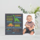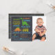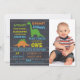 O convite de festas deste rapaz apresenta dois dinossauros bonitos num fundo de quadro negro digitalizado. Eu também usei uma fonte como giz e alguns mergulhadores simples. A fotografia do seu filho aparece no lado direito do convite. Essa design também está disponível na loja, sem uma área de fotografia. Eu queria criar convites tão novos para o quadro de chaleiras de dinossauros em estilo solto e divertido para a loja dar mais escolhas aos visitantes da loja. O convite para dinossauros do quadro de primeiro aniversario deste rapaz é adequado para alguém que procura um design de quadro colorido.