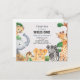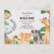 Um elegante campo de selva temeu o primeiro convite de aniversário em aquarela, representando uma selva tropical selvagem completa com uma coleção de animais selvagens bonitos. Este tema apresenta animais selvagens e aves como elefante, chita, girafa, zebra, macaco, tucano e avestruz, moldando o cartão. A carta apresenta uma tipografia e fundo texturizados 'Wild One' personalizados e exclusivos. A cor de fundo pode ser personalizada de acordo com a sua necessidade.