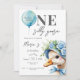 a história de um marco alegre, muito primeiro aniversário, uma celebração envolta em amor, calor e um toque de capricho. A design centra-se num ganso encantador, carinhosamente ilustrado como se fosse arrancado das páginas de um livro infantil amado. Ele não é qualquer ganso—Ele é "um ganso bobo", vestido para uma festa de chapéu listrado e coroa floral, orgulhosamente segurando um balão azul. Sua expressão é de olhos largos, inocentes e cheio de personalidade — como uma criança de um ano descobrindo o mundo.
