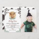 Nosso convite de aniversário de vaca é a maneira perfeita de convidar amigos e família para sua festa. O design apresenta um tema de fazenda, com bastante espaço para todos os detalhes importantes, como data, hora e local da festa. Perfeito para qualquer idade, gênero e tema do partido, é certo que impressiona seus hóspedes e os entusiasma pela celebração.