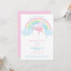 Celebre o seu primeiro aniversário com este bonito convite com um unicórnio galante junto a um cotovelo pastel colorido com bordas de nuvem. Personalize o texto rosa e azul divertido com suas próprias informações usando os campos modelo fornecidos. O dorso é um rosa pastel sólido.