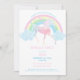 Celebre o seu primeiro aniversário com este bonito convite com um unicórnio galante junto a um cotovelo pastel colorido com bordas de nuvem. Personalize o texto rosa e azul divertido com suas próprias informações usando os campos modelo fornecidos. O dorso é um amarelo claro sólido