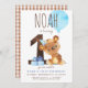 Este primeiro convite de festa de aniversário apresenta um ursinho de pelúcia com chapéu de festa azul. A parte de trás do convite tem um padrão marrom de gingham; perfeito para a festa de aniversário temática de animais de floresta masculina. Personalize o convite com seus detalhes e você tem as opções para comprar convites impressos ou um download digital.