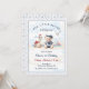 Ande o teu primeiro aniversário com este Pequeno Convite de Marinheiro! Apresentando um adorável ursinho de pelúcia em uma roupa de marinheiro, barco e farol. Moldura do padrão da âncora de água e o verso. Personalize facilmente o texto. - Kate Eden Art