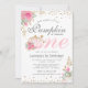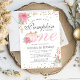 A adorável abóbora rosa cai no primeiro convite de aniversário, apresentando um fundo branco clássico, florais cor-de-água rosa com folhagem botânica verde e dourada, confete falso dourado, abóboras de aquarela química e um elegante modelo de aniversário que é fácil de personalizar. Convite de festas perfeito para comemorar sua abóbora virando uma!