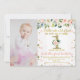 Foto cor-de-rosa Dourada Convite para primeiro aniversario Floral Fotofloral Fita convite para o primeiro aniversário de uma menina com um falso número de brilho de ouro e dois arranjos florais. O design também apresenta alguns pontos brilhantes dourados cor-de-rosa e falsos. Esta é uma design doce para as suas meninas, bem na primeira festa de aniversário.