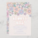 Retro inspirou Groovy Um primeiro convite de aniversário com flores do estilo 70 e fontes e cores boho.