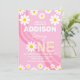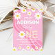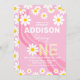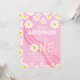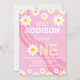 Primeiro aniversario Hippy Wave Daisy, Rosa Quente, Convite à margarida colorida Primeiro convite de aniversário em vários tons de rosa quente com margaridas brancas e amarelas. Excelente para alguém que tenha uma festa de aniversário de punho hippies.