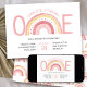 O primeiro convite de aniversário da moça do Pastel Rainbow para uma garotinha a fazer um. O design tem um desenho arco-íris rabiscado em tons de cor-de-água rosa e amarela. O arco-íris ajuda a formar a palavra "UM" e a formulação do convite é escrita em tipografia química. O primeiro aniversario do arco-íris, bonito e moderno, convida com o padrão do arco-íris no verso.