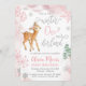 Celebre o seu primeiro aniversario com estes convites para os temas da Terra da Onederland de inverno, sempre fofos! Este design colorido apresenta flocos de neve, veados e pinheiros, cor-de-rosa e prateados pastel.
