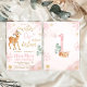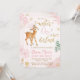 Celebre o seu primeiro aniversario com estes convites para os temas da Terra da Onederland de inverno, sempre fofos! Este design colorido apresenta flocos de neve, veados e pinheiros cor-de-rosa e pastel dourado.