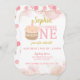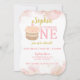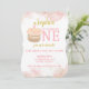 Este design apresenta um cupcake com elementos dourados e cor-de-rosa e um fundo de aquarela. Um adorável convite para o seu primeiro aniversário.