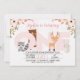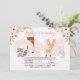 O convite de aniversário de animais da floresta desta menina apresenta quatro animais bonitos, um veado, urso, guaxinim e coelho. Acrescentei a palavra um ao design e alguns arranjos florais cor de água, na sua maioria cor rosa. O plano de fundo é uma imagem de papel de aquarela digitalizada. Eu incluí um padrão de bolinhas aleatório na parte de trás do convite sobre uma lavagem cor-de-água rosa. Eu queria criar alguns novos animais da floresta nos primeiros convites para a loja porque é um tema popular. Este design também está disponível com uma fotografia. O convite de festas de primeiro aniversario de animais da floresta desta menina está pronto para ser personalizado.