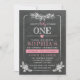 Convite para primeiro aniversario de quadro chalkboard - cor-de-rosa e branco, convite para aniversário de quadro chalkboard